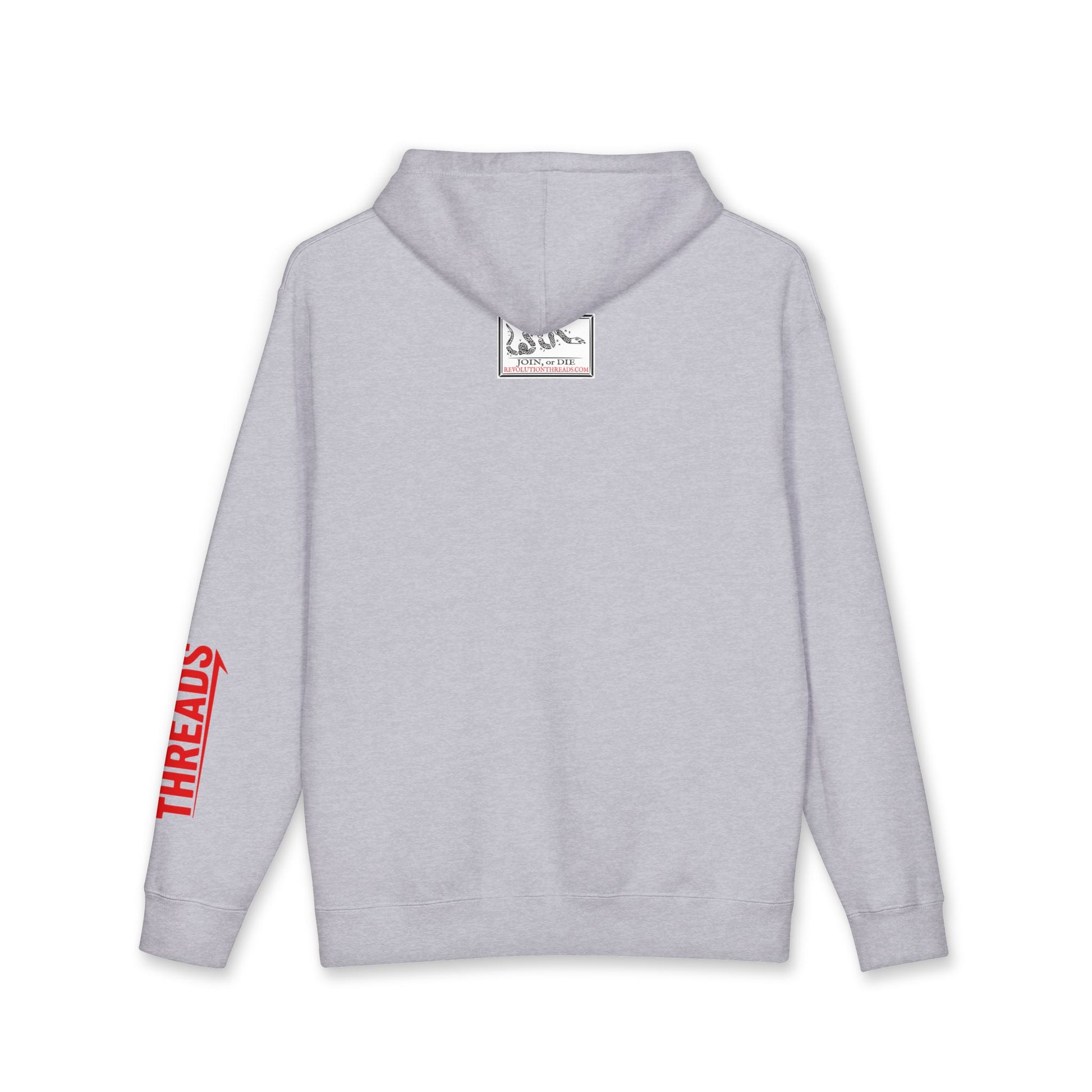 The back of the hoodie features a strong emblem of defiance: the iconic Gadsden flag rattlesnake with the phrase "JOIN OR DIE", reinforcing the spirit of the American Revolution.